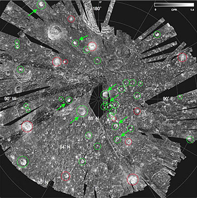 Mini-Sar發(fā)現(xiàn)的北極附近的40多個隕坑里的水冰寬度不等,直徑從2公里到15公里之間。盡管不能測出隕坑的深度,但科學(xué)家說,這些水冰至少應(yīng)該在2米厚以上,才會讓月船一號測出。