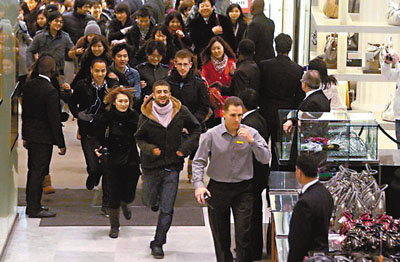 中新網(wǎng)12月28日電 前日是圣誕拆禮物日,英國倫敦城西名店早在網(wǎng)上事先張揚(yáng)這天舉行瘋狂大減價(jià),Gucci等名牌全部半價(jià)銷售,加上英國下周將征收17.5%的增值稅,50萬人前日出動(dòng)掃平貨,有些早在清晨時(shí)分在名店外排隊(duì)等開門,期間出現(xiàn)插隊(duì)、推撞等混亂場面,要?jiǎng)跓┚瘑T出動(dòng)維持秩序。