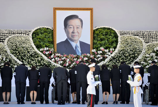 金大中因肺炎醫(yī)治無效,于八月十八日病逝。韓國政府隨即決定為他舉行為期六天的國葬。這是韓國歷史上首位前總統(tǒng)享受國葬的待遇。中國政府派唐家璇、美國政府派奧爾布賴特、日本政府派河野洋平出席金大中的葬禮。