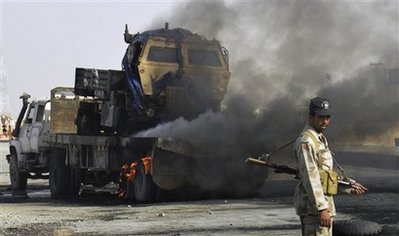 中新網(wǎng)8月31日電 綜合外電報道,巴基斯坦為駐阿富汗北約部隊運送物資的補給車和油罐車30日晚在巴阿邊境遭到可疑武裝分子襲擊,至少20輛車被燒毀,2人受傷。