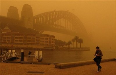上個月是澳洲歷來最炎熱的一個月份,加上歷時長達10年的旱災累積了大量沙塵,結(jié)果在強風吹襲下,形成了這股自1942年以來侵襲悉尼的最嚴重沙塵暴。