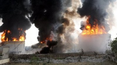 當?shù)仉娨暸_援引國營石油公司市場營銷經(jīng)理達加表示,至今天凌晨,油庫大火仍然猛烈燃燒,傷亡人數(shù)可能還會增加。達加表示,爆炸起火原因可能是其中一座油庫的輸送閥故障,導(dǎo)致在輸送過程中漏油起火爆炸。