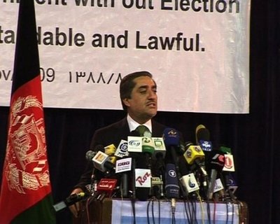 阿卜杜拉當天在喀布爾舉行的新聞發(fā)布會上說:“我不會參加11月7日的選舉,因為不可能舉行透明的選舉! 阿卜杜拉告訴自己的支持者,他在“廣泛征求民眾意見”后作出這一“艱難的決定”。阿卜杜拉還表示,他不相信在不撤換選舉委員會負責(zé)人的情況下能夠舉行一場自由和公平的選舉,因為該委員會對第一輪選舉中的舞弊行為負有責(zé)任。但當被問及是否呼吁抵制第二輪選舉時,阿卜杜拉回答道:“我沒有發(fā)出那個號召。”