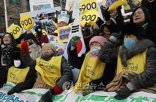 中新網(wǎng)1月13日電 韓國(guó)挺身隊(duì)問(wèn)題對(duì)策協(xié)會(huì)(以下簡(jiǎn)稱挺身隊(duì)協(xié)議會(huì))13日下午12點(diǎn)在日本駐韓國(guó)大使館前舉行了第900次周三集會(huì)。