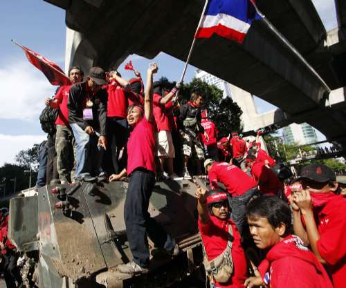局勢(shì)緊張,泰國總理阿披實(shí)取消原定于13至17日訪問澳洲的行程,10日主持國內(nèi)安全行動(dòng)指揮部會(huì)議,任命總理秘書長戈沙.沙帕瓦蘇為首席談判代表,負(fù)責(zé)與“紅衫軍”核心成員溝通以確保集會(huì)和平有序。負(fù)責(zé)控制局勢(shì)的安全部隊(duì)將只佩帶警棍而不攜帶槍枝,但武裝人員將隨時(shí)待命,在出現(xiàn)突發(fā)事件時(shí)快速部署。