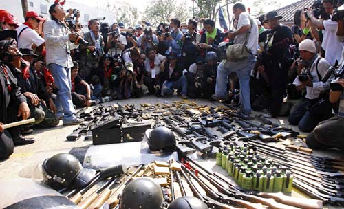 紅衫軍領(lǐng)袖與軍警首長和泰空高層會談后,政府昨晚恢復(fù)“人民頻道”訊號,示威者其后散去。沖突期間至少18人受傷,包括4名軍警,其中一名受傷示威者疑被橡膠子彈擊中,其它只屬輕傷。