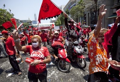 泰國(guó)政府表示正尋求與紅衫軍談判,以結(jié)束政治危機(jī)。但紅衫軍堅(jiān)持阿披實(shí)須立即解散國(guó)會(huì),若他答應(yīng),示威者將實(shí)時(shí)回家。約500名親政府黃衫軍昨日聚集于勝利紀(jì)念碑,呼吁紅衫軍回家。