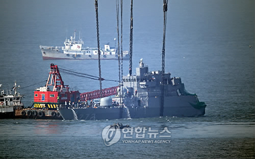 韓國軍方有關(guān)人士表示:“沉重的門鈕和煙筒能被損毀丟失,表示當(dāng)時受到了強(qiáng)力沖擊!薄翱梢詫㈤T鈕損毀的沖擊,一般可以對乘務(wù)官兵造成昏厥!