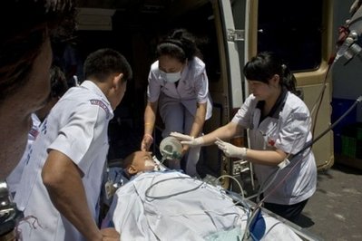 中新網(wǎng)5月1日電 據(jù)“中央社”報(bào)道,泰國反政府紅衫軍29日闖入朱拉醫(yī)院搜查,以為軍人鎮(zhèn)守大樓準(zhǔn)備驅(qū)離行動(dòng),紅衫軍領(lǐng)袖30日致歉并清出部分路障供救護(hù)車與病人進(jìn)出,但已有逾1000名病人轉(zhuǎn)院。