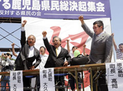 鹿兒島縣議會(huì)3月24日一致通過了反對(duì)機(jī)場(chǎng)遷入的決議。4月18日在德之島舉行了約1.5萬人參加的反對(duì)集會(huì)。