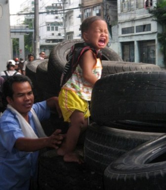 有關(guān)這名男童在示威者和泰國(guó)士兵對(duì)峙前線的視頻已被上傳至網(wǎng)站,包括婦女和兒童在內(nèi)的5000名紅衫軍示威者正為軍方把他們從營(yíng)地里強(qiáng)行驅(qū)逐出去作準(zhǔn)備。