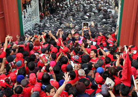 對于當(dāng)前政府的支持者來說,“紅衫軍”的示威就好似一次農(nóng)民起義。而對“紅衫軍”來講,有關(guān)誰能夠引領(lǐng)政治潮流的爭辯已經(jīng)結(jié)束,他們看起來似乎比他信的民兵組織更為強(qiáng)勢。