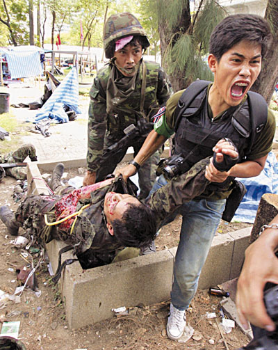 中新網(wǎng)5月21日電 據(jù)香港《文匯報(bào)》報(bào)道,泰國(guó)軍方清場(chǎng)與紅衫軍激戰(zhàn),曼谷慘成戰(zhàn)場(chǎng),國(guó)際人權(quán)組織“人權(quán)觀察”20日指摘雙方嚴(yán)重侵犯人權(quán),批評(píng)紅衫軍射殺記者,又以兒童作為人盾,行徑應(yīng)遭譴責(zé)。