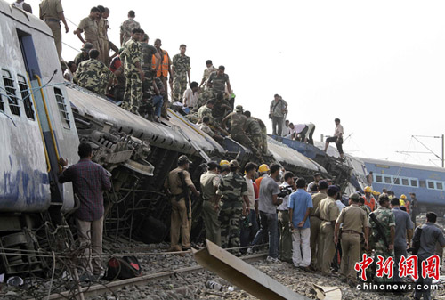 中新網(wǎng)5月28日電 綜合報道 當(dāng)?shù)貢r間28日凌晨1時30分,在印度東部西孟加拉邦西米德納布爾附近,一輛高速行駛的旅客列車遭襲致13節(jié)車廂脫軌,其中3節(jié)車廂又與對面駛來的貨運列車相撞。目前為止,事故至少造成65人死亡,200多人受傷。
