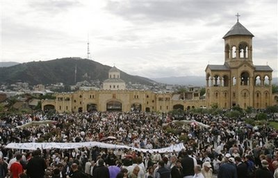 26日是格魯吉亞的獨(dú)立日。當(dāng)天的示威活動主要在位于市區(qū)的派恰澤國家體育場舉行,但稍后有大量示威者在街道上游行,前往第比利斯最主要的教堂。