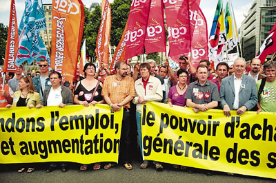 中新網(wǎng)6月14日電 據(jù)香港《文匯報(bào)》報(bào)道,法國(guó)工廠工人和公務(wù)員13日在全國(guó)游行,抗議總統(tǒng)薩科齊處理經(jīng)濟(jì)危機(jī)不力。這是法國(guó)8大工會(huì)今年第5次發(fā)起的示威,要求政府采取措施,以緩解國(guó)民受全球經(jīng)濟(jì)下滑的影響。