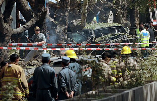 據(jù)報(bào)道,爆炸發(fā)生地附近有多國(guó)部隊(duì)駐扎。事發(fā)于早上8時(shí)許,一名自殺式襲擊者駕駛滿(mǎn)載炸藥的汽車(chē),在北約駐阿富汗國(guó)際安全援助部隊(duì)(ISAF)總部門(mén)外引爆炸彈。爆炸導(dǎo)致大樓玻璃粉碎,附近多輛汽車(chē)損毀,地上血漬斑斑。