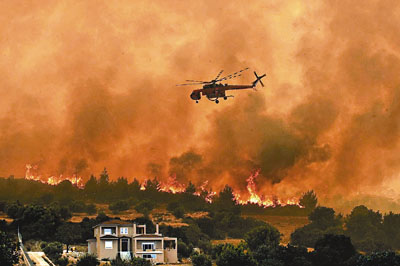 希臘每年夏天的氣溫都偏高,由于干旱或縱火,當(dāng)?shù)亟?jīng)常發(fā)生火患。這是自2007年希臘本土發(fā)生大火以來最嚴(yán)重的火災(zāi)。當(dāng)年的大火造成70人死亡。