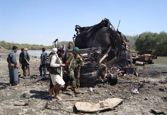 當(dāng)?shù)貢r間4日凌晨2點半,北約開始對塔利班劫持的油罐車發(fā)動進攻。地點在昆都茲西南方向約7公里處。阿富汗政府一名發(fā)言人4日稱空襲炸死了90人,其中大部分為塔利班武裝分子。但當(dāng)時德國軍方表示有56名塔利班武裝分子喪生,沒有造成平民傷亡。