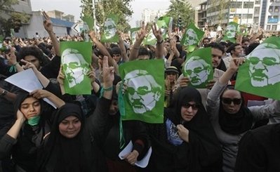 18日,幾萬名佩戴綠色標志物的穆薩維支持者,高呼口號向德黑蘭一個主要廣場出發(fā),參加一年一度的“圣城(耶路撒冷)日”集會!笆コ(耶路撒冷)日”是伊朗每年舉行的反對以色列、支持巴勒斯坦的大會。伊朗總統(tǒng)內(nèi)賈德將在此次大會上發(fā)表演講。