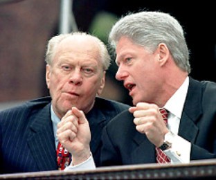 福特夫婦1993年首次與克林頓夫婦見(jiàn)面,他們當(dāng)時(shí)邀請(qǐng)新的第一家庭至他們科羅拉多的家中作客。福特對(duì)克林頓的印象好壞參半,他認(rèn)為克林頓很有個(gè)人魅力、說(shuō)話準(zhǔn)確、善于推銷,是他所見(jiàn)過(guò)的最好的政治家,甚至要比肯尼迪總統(tǒng)都強(qiáng),但他認(rèn)為克林頓在外交政策方面很弱。福特還感到克林頓沒(méi)有吸取他個(gè)人生活的錯(cuò)誤,有關(guān)他風(fēng)流行為的傳聞在他進(jìn)行總統(tǒng)競(jìng)選活動(dòng)時(shí)一直困擾著他。福特稱,他得出這樣的結(jié)論是出于他對(duì)克林頓夫婦的觀察,他曾邀請(qǐng)克林頓夫婦在科羅拉多度周末。他后來(lái)說(shuō):“我可以告訴你一件事:他不放過(guò)社交場(chǎng)合的任何一位漂亮女士。我可以告訴你,他一直色迷迷的。貝蒂有著同樣的印象,他毫不掩飾自己的興趣!