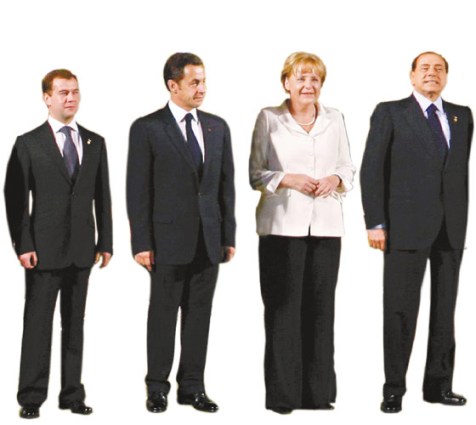 本屆峰會(huì)東道主日本首相福田康夫身高剛好是1.68米,法國(guó)總統(tǒng)薩科奇則只有1.65米。德國(guó)女總理默克爾與法國(guó)總統(tǒng)薩科齊一樣高,身高1.65米。