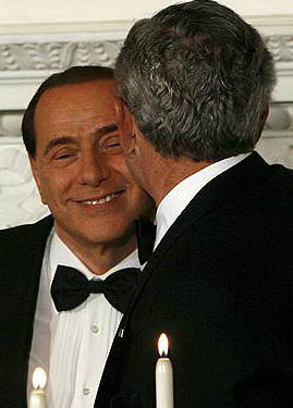 布什和貝盧斯科尼在舉杯后互碰面頰,布什總統(tǒng)還愉快地致了告別辭。一位官員稱:“政治家們表現(xiàn)得如此親密是不多見的,他們看起來更像是好友而不是世界領(lǐng)導(dǎo)人。”