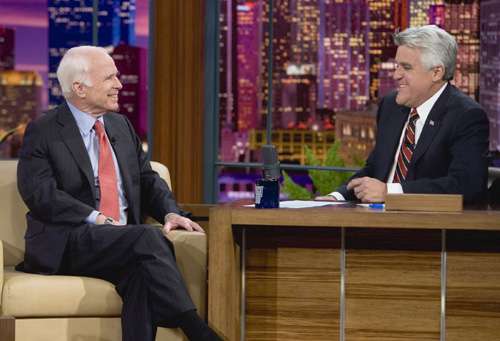 麥凱恩十一日在全國廣播公司的《今夜秀》(Tonight Show)中接受主持人積連奴訪問。他看來精神不錯,而且能夠泰然地拿敗選一事來開點玩笑。他說自己在敗選后一直“睡得像個嬰兒般:睡兩個鐘頭,然后起床哭一下,然后又睡兩個鐘頭!丙渼P恩稱,他所住的亞利桑那州現(xiàn)在已出了四名在大選中落敗的總統(tǒng)候選人,因此該州“可能是美國唯一一個母親們不會告訴子女他們有朝一日可以當(dāng)上總統(tǒng)的州分了!彼终f,大選翌日他和妻子辛迪做的第一件事是出門買咖啡,而“不是買報紙”。