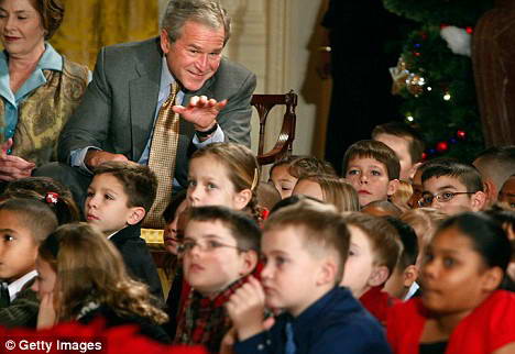 12月8日,布什面對(duì)的觀眾不是處處與其作對(duì)的國(guó)會(huì),也不是叫不上名字的外國(guó)政要,而是受邀來(lái)白宮參加特別圣誕晚會(huì)的小客人們。這些小客人們的父母由于在美軍服役而無(wú)法在圣誕節(jié)的時(shí)候與他們共度節(jié)日。布什邀請(qǐng)他們參觀白宮,觀看一個(gè)以圣誕為主題的節(jié)目表演。