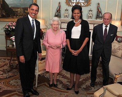 中新網(wǎng)4月2日電 美聯(lián)社消息,在倫敦參加20國集團(tuán)峰會(G20)的美國總統(tǒng)奧巴馬夫婦當(dāng)?shù)貢r間1日與英國女王伊麗莎白二世及王夫菲利浦親王舉行會晤。
