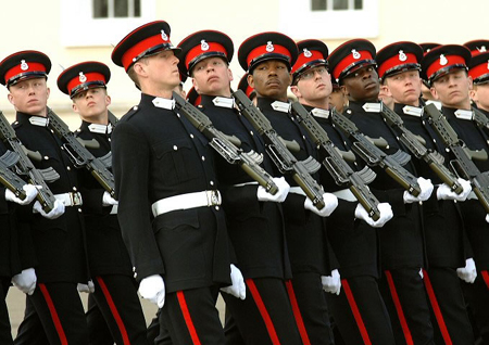 桑德赫斯特皇家軍事學(xué)院學(xué)員在進(jìn)行隊(duì)列訓(xùn)練。
