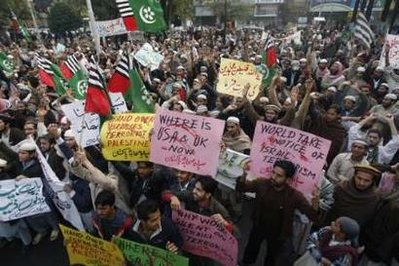 據(jù)《星島日?qǐng)?bào)》報(bào)道,在巴基斯坦的卡拉奇,超過10000人響應(yīng)政黨呼吁參加游行,他們揮動(dòng)巴勒斯坦旗幟,高叫以色列是恐怖分子的口號(hào),抗議以軍侵占加沙地帶。示威者又用鞋擲向美國總統(tǒng)布什及以色列總理奧爾默特的畫像,指摘他們殺害無辜。