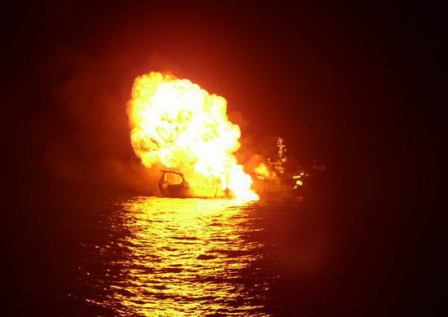 印度海軍公布的擊沉索馬里“海盜船”的照片