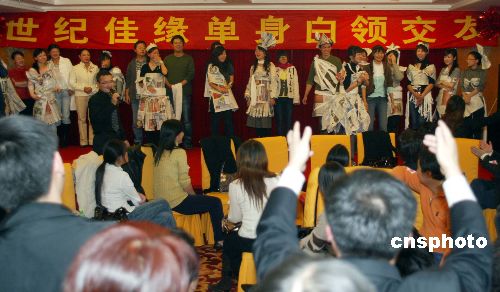 這次互動(dòng)交友活動(dòng)的高潮是愛(ài)情大轉(zhuǎn)盤(pán)游戲,參加的所有人按照性別排成了兩個(gè)同心圓,男士在內(nèi)圈,女士在外圈,男女按照反方向旋轉(zhuǎn),以確保每個(gè)人都有機(jī)會(huì)聯(lián)系到現(xiàn)場(chǎng)的所有異性,覺(jué)得誰(shuí)中意就可以在傳情卡上寫(xiě)下自己的聯(lián)系方式發(fā)給對(duì)方。而豬八戒背媳婦的游戲,基本上背媳婦的和“媳婦”都屬于彼此看對(duì)眼的,否則也不會(huì)輕易參與這種身體接觸的游戲。記者發(fā)現(xiàn),會(huì)場(chǎng)有一位身著白色上衣氣質(zhì)極佳的卷發(fā)女孩,收到了十多枝玫瑰,而她的身邊,總是有男士圍繞。換組的時(shí)間到了,還有男士因?yàn)樗岵坏秒x開(kāi)這個(gè)組。也有一些年齡較大的女士,獲得的關(guān)注就較少。這或許就是這種大規(guī)模集體相親活動(dòng)的殘酷競(jìng)爭(zhēng)性所致,也是這種活動(dòng)最大的弊端。在主辦方宣布活動(dòng)結(jié)束后,現(xiàn)場(chǎng)還有許多人留戀不舍。記者觀(guān)察到約有七八十對(duì)成雙成對(duì)的會(huì)員,結(jié)伴退出,或相約晚餐。據(jù)世紀(jì)佳緣交友網(wǎng)站創(chuàng)始人小龍女介紹:北京的會(huì)員比較多,而且各方面素質(zhì)也比較高,溝通和交流起來(lái)較為大方,大家都抱著同樣的目的而來(lái),所以也很容易克服心理上的障礙,達(dá)到結(jié)識(shí)新朋友,邂逅意中人的目的。 中新社發(fā) 楊可佳 攝