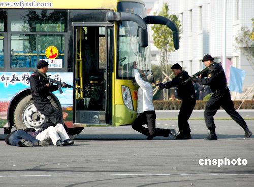 11月12日,山東濰坊公安機(jī)關(guān)苦練基本功暨反恐演練匯報表演在該市警官培訓(xùn)基地舉行,內(nèi)容包括隊列分列式表演、警務(wù)各項技能表演、多警種聯(lián)合反恐作戰(zhàn)演練等三項內(nèi)容。中新社發(fā) 田源 攝