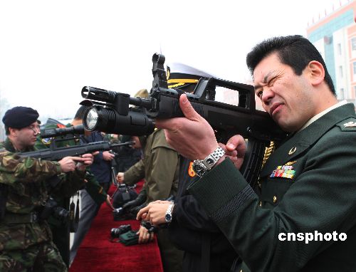 駐華武官參觀中國武警部隊武器裝備。