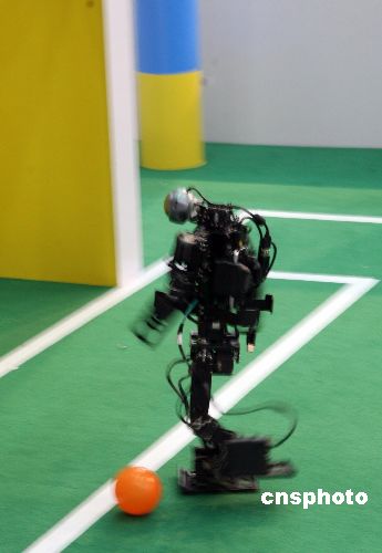11月14日,海峽兩岸機(jī)器人足球賽在重慶大學(xué)鳴鑼開賽,來自國際科技大學(xué)、上海交通大學(xué)、清華大學(xué)、華南理工大學(xué)、重慶大學(xué)、成功大學(xué)、中正大學(xué)、淡江大學(xué)、長庚大學(xué)、高雄第一科技大學(xué)等海峽兩岸知名高校的機(jī)器人,將分為人形機(jī)器人和中型機(jī)器人兩種組別進(jìn)行比賽。據(jù)悉,比賽是由重慶大學(xué)自動化學(xué)院、中國自動化學(xué)會機(jī)器人競賽委員會主辦。中新社發(fā) 郭晉嘉 攝