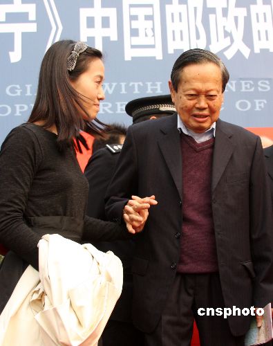 2007年11月14日,《科學(xué)巨匠、華夏赤子--楊振寧》明信片首發(fā)儀式在安徽省合肥市科技館舉行,楊振寧攜妻子翁帆出席。這套明信片共有30張照片,這些照片中不僅有楊振寧和國家領(lǐng)導(dǎo)人的合影,以及他獲得諾貝爾獎時的照片,還有楊振寧與翁帆在青海踏青時的照片。中新社發(fā) 從啟 攝