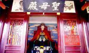 媽祖殿:媽祖是一位海神,保佑船家以及海上的平安.媽祖在我國(guó)南方沿海及東南亞、日本、朝鮮一帶極受崇拜。那么為什么要在綿山修媽祖殿呢?明清時(shí)期著名皇商介休范家,由于常有海上貿(mào)易,是舉世聞名的船幫。有一次,他們又有出海業(yè)務(wù),船隊(duì)在大海中飄泊已有半月。此時(shí)忽然狂風(fēng)驟起,烏云翻滾,四周一片漆黑,并發(fā)生了海嘯,眼看就要人仰船翻。船上的人驚慌失措,心中默念海神,希望得到救助。就在此危難時(shí)刻,突然從海中緩緩升起一位站在白蓮臺(tái)上的朱衣女子。她往海中扔了顆定風(fēng)珠,風(fēng)漸漸小了,天也亮了,一切又平靜下來(lái),好象什么也沒(méi)發(fā)生過(guò)。當(dāng)人們回過(guò)神來(lái),再看這位朱衣女子時(shí),已經(jīng)騰空而去。人們頓時(shí)明白這是海神媽祖娘娘顯靈救了他們。此次出海他們滿載而歸;氐浇樾莺,為了感謝媽祖娘娘的救命之恩,在綿山建廟供奉媽祖。媽祖為閩南方言,又稱“天上圣母”,“天后娘娘”。她能預(yù)言禍福,善于治病救人。農(nóng)歷三月初三和九月九日是媽祖的生日和升天日。媽祖左側(cè)為吳天醫(yī),醫(yī)術(shù)高超,救人無(wú)數(shù);右側(cè)為順天圣母,能除蛇妖,催生助產(chǎn),是保護(hù)婦女、兒童之神。