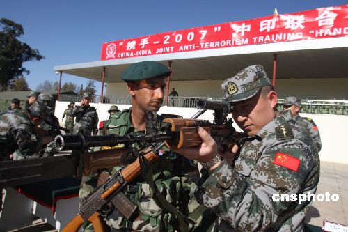 “攜手-二00七”中印陸軍聯(lián)合反恐訓(xùn)練開(kāi)訓(xùn)儀式21日上午在中國(guó)昆明舉行。中新社發(fā) 張雷 攝
