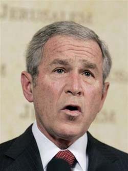 布什在與以色列總理奧爾默特會(huì)談結(jié)束后表示:“伊朗是全世界的威脅。我想重復(fù)以前說(shuō)過(guò)的一句話(huà):如世界各國(guó)不團(tuán)結(jié)一致阻止伊朗獲得研制核武器的技術(shù),那么它過(guò)去、現(xiàn)在和將來(lái)都是威脅。”