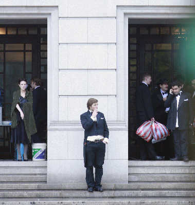 由于音樂(lè)廳四個(gè)門口都有劇組的工作人員嚴(yán)格控制進(jìn)出人員,而導(dǎo)演陳凱歌,主演黎明、孫紅雷又都是經(jīng)過(guò)地下停車場(chǎng)直接進(jìn)入音樂(lè)廳內(nèi)部,所以早報(bào)記者只是從工作人員處獲悉,當(dāng)外籍演員都在兩側(cè)邊門抽煙聊天時(shí),黎明正在音樂(lè)廳內(nèi)上妝。據(jù)消息人士透露,為了昨日這場(chǎng)戲,黎明早在北京拍攝時(shí)就開始準(zhǔn)備,而且為了符合梅蘭芳去百老匯時(shí)的體態(tài),黎明還特意增肥,使臉龐看起來(lái)圓潤(rùn)一些,更貌似梅蘭芳。 記者 劉嘉琦