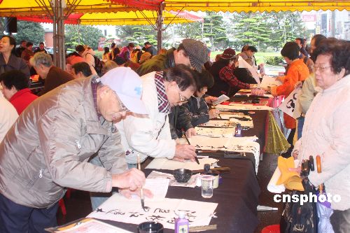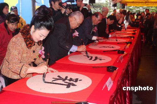 臺(tái)灣一年一度的新年開(kāi)筆大會(huì),2月3日在臺(tái)灣領(lǐng)導(dǎo)人辦公室前廣場(chǎng)舉行。報(bào)名參加書(shū)法揮毫者達(dá)三千多人。中新社發(fā) 耿軍 攝
