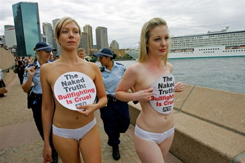 中新網(wǎng)2月28日電 綜合報道,“人道動物協(xié)會”(PETA)成員27日裸體出現(xiàn)在澳大利亞悉尼歌劇院前,抗議歐洲和西班牙舉行的斗牛比賽相當(dāng)慘忍。