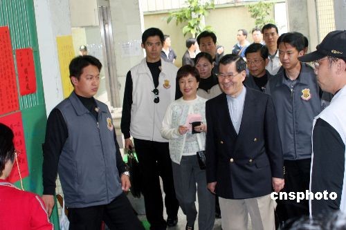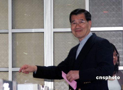 蕭萬長在臺北一個投票所投票。