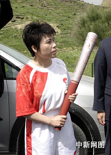 希臘當(dāng)?shù)貢r間3月24日,北京二00八年奧運(yùn)會圣火采集儀式在古奧林匹亞競技場舉行,隨后火炬希臘傳遞開始。第三棒火炬手、中國乒乓球奧運(yùn)冠軍鄧亞萍在交接處等待圣火到來。 中新社記者 王歡