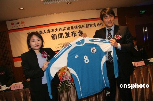 3月25日,在中超2008賽季開(kāi)賽的前4天,大連實(shí)德足球俱樂(lè)部舉行新聞發(fā)布會(huì)?偨(jīng)理李明及主教練拉德科出席并正式宣告首創(chuàng)安泰人壽成為其官方合作伙伴。發(fā)布會(huì)上還展示了大連實(shí)德的中超2008賽季新隊(duì)衣。中新社發(fā) 大新 攝