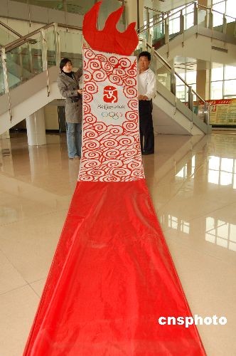 3月30日下午,濰坊風(fēng)箏藝人王兆瑞特意扎制的奧運火炬風(fēng)箏進行試飛。王兆瑞,今年54歲,是濰坊中心血站的一名職工,六歲開始扎制風(fēng)箏,多次在國際風(fēng)箏會上獲獎。當(dāng)奧運會即將到來和第二十五屆國際風(fēng)箏會到來之際,特意扎制了奧運火炬風(fēng)箏。這只奧運火炬風(fēng)箏屬軟板類風(fēng)箏,高6.5米,寬1.1米,主體框架用玻璃鋼桿制成,以格子綢為布料,按照祥云火炬的實際比例擴大手繪的。