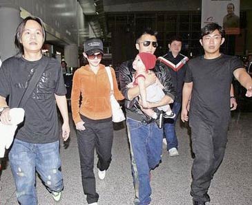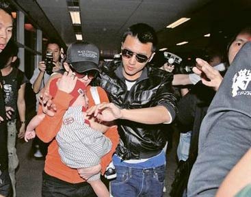 據(jù)香港明報報道,霆鋒與柏芝帶著兒子Lucas(謝振軒)前晚10時許由曼谷返抵香港,雖得4名保安開路,但難敵現(xiàn)場數(shù)十名守候的記者。霆鋒雙手抱著Lucas,柏芝的手還是要挽住霆鋒的手臂不放。