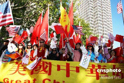 組圖:海外同胞支持北京奧運(yùn) 護(hù)衛(wèi)圣火傳遞 (8)